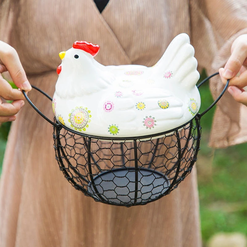 Hen-Shaped Decorative Design – Unique farmhouse-style egg basket for kitchen decoration.