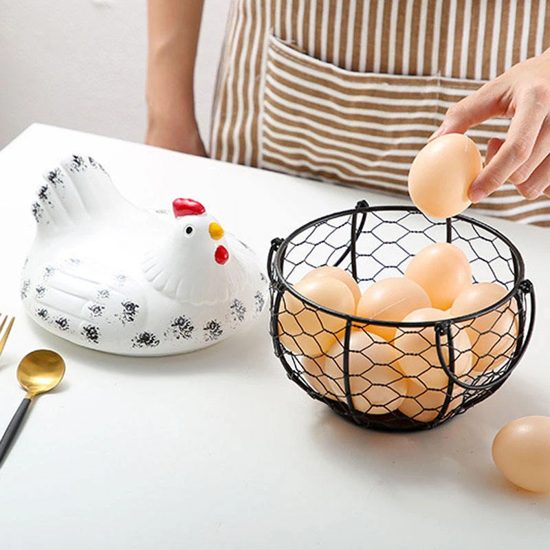 Designed in a beautiful hen shape, this metal egg storage basket keeps your eggs secure, visible, and easily accessible. Whether you store farm fresh eggs, organic eggs, or regular grocery eggs, this countertop egg holder helps prevent rolling and breakage while adding a decorative touch to your kitchen décor.